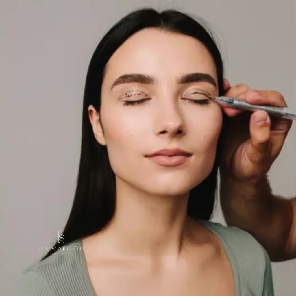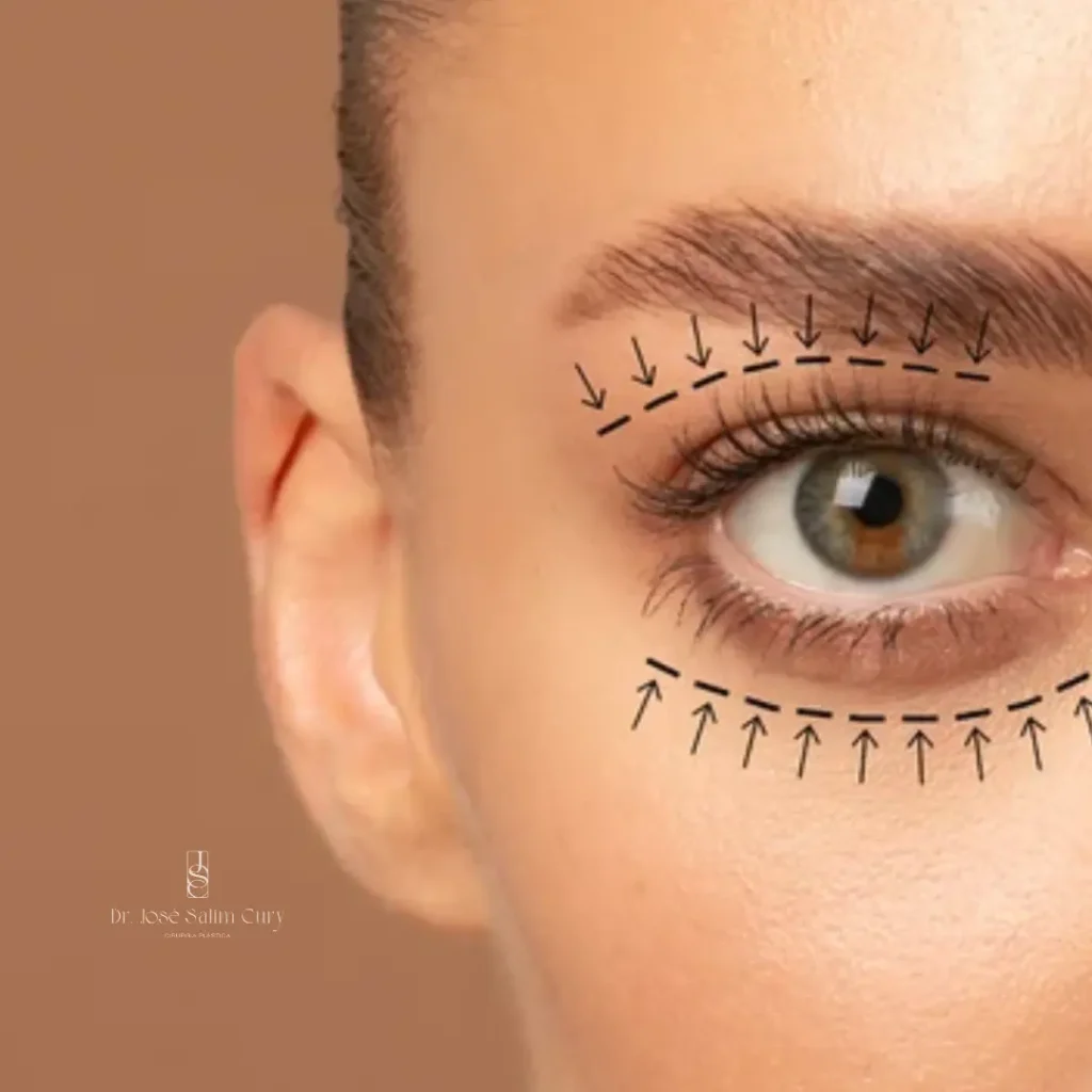 O procedimento é realizado sob anestesia local com sedação. Dr. José Cury faz incisões discretas nas dobras naturais das pálpebras superiores e logo abaixo dos cílios nas pálpebras inferiores. Através dessas incisões, o excesso de pele, músculo e gordura é removido. Em casos específicos, a gordura pode ser reposicionada para suavizar as bolsas sob os olhos. Este processo é meticulosamente planejado para garantir cicatrizes mínimas e resultados naturais.