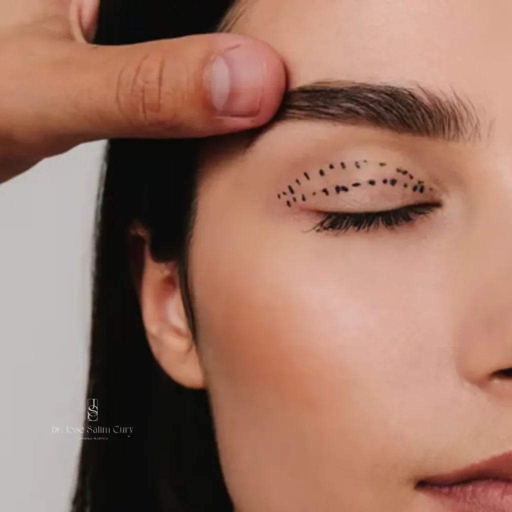 El procedimiento se realiza con anestesia local y sedación. El Dr. José Cury realiza incisiones discretas en los pliegues naturales de los párpados superiores y justo debajo de las pestañas en los párpados inferiores. A través de estas incisiones, se elimina el exceso de piel, músculo y grasa. En casos específicos, se puede reposicionar la grasa para suavizar las bolsas debajo de los ojos. Este proceso se planifica meticulosamente para garantizar cicatrices mínimas y resultados naturales.